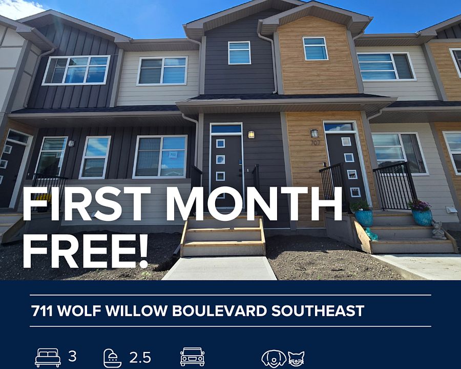 Modern 3 Beds, 2.5 Baths TownHouse | No Pets Allowed | First Month Free for Move In by October 15th. Welcome to your new home at 711 Wolf Willow Boulevard Southeast - N/A a modern and well-maintained 3 beds / 2.5 baths / TownHouse offering comfort, space, and convenience. Ideally located close to shopping, schools, parks, and transit. SHOWINGS: Conducted in an open-house format book your appointment today! Prices, availability, and promotions are subject to change without notice. PROPERTY DETAILS: - Furnished or Unfurnished: Unfurnished - Pets: No Pets Allowed - Smoking: Non- Smoking - Parking: Double Detached Garage - Storage Included: No - Laundry: In- Suite Laundry - Management Type: Placement Only - Lease Term: Long Term UNIT FEATURES: - Living Space:Open-concept living room layout, perfect for relaxing or entertaining - Kitchen: Sleek and modern kitchen with all appliances for a contemporary look with plenty cabinet storage to keep everything organized - Dining Space: Open-concept design flowing into the living space, perfect for entertaining - Bedrooms: 3 Bedrooms featuring ample storage for clothing and accessories - Window Coverings: Includes window coverings for privacy and light control UTILITIES: - Utilities Included: No Utilities Included Here's a helpful tool you can use to get a rough estimate of utility costs. LOCATION HIGHLIGHTS: - Outdoor Living: Nearby Parks, Pathways, Greenspaces - Transit & Access: Transit Lines / Major Roads Nearby - Family Friendly: Close to Schools, Childcare, Rec Centres - Local Conveniences: Groceries, Shops, Restaurants, Services Nearby Don't wait properties like this don't last long.