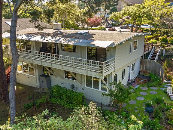 Situated in the desirable Peters Gate neighborhood, this very private, well-maintained home is a short walk to vibrant historic downtown Monterey. Enjoy restaurants, cafes, patisseries, museums, walking trails on the shoreline at Fishermans wharf and close proximity to all the Peninsula has to offer. A two-story remodeled mid century style home features a dining room opening to the living room, floor to ceiling living room windows all facing nature and a tranquil year-round stream with multiple outdoor enjoyment areas, Japanese style terraced gardens and a patio to soak up the sun. The main floor offers an en-suite primary bedroom and there are flexible options for library or home offices. The lower level has another private en-suite primary bedroom with nature viewing windows. There is an attached two-car garage, laundry room, 450 sq. ft finished basement and partially fenced 1/3 acre back yard.