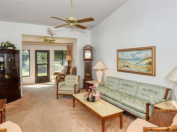 FURNISHED 2 bedroom and 2 bathroom villa rarely available in beautiful Country Village a 55+ community. Entry way welcomes you to the large dining room and living room with high ceilings and bonus room/den. Kitchen has closet pantry, dinette area and closet laundry with access to 1 car garage. Master bedroom with master bathroom and walk-in closet. Guest bedroom with closet and guest bathroom. Storage closet in hall. Fully furnished with furniture, kitchen accessories, linens and more. Association amenities include heated community pool, heated spa, fitness center, shuffleboard, clubhouse with a full kitchen, on site manager, grills, and more. You may choose to be as active as you want. Planned social events are steps away. Beaches are a short 5 mile drive away. Close to shopping, dining, theaters, hospitals, airport, UTC Mall, Polo, Rowing, historical museums and parks, etc. Tampa with major sporting events and Orlando with theme parks are a reasonable drive away. This exceptional villa is close to every thing. Reverse osmosis at kitchen sink. Attic fan in garage. Make this your tranquil dream home in Florida today!