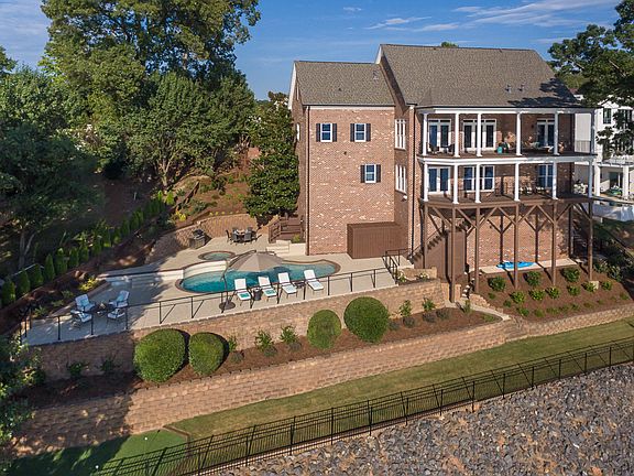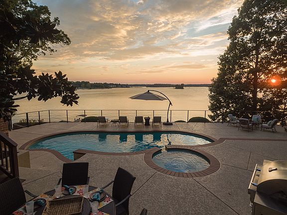 This Tega Cay waterfront home will "WOW" you with its long-range panoramic sunset views of the main channel. Relax in the lakeside saltwater pool and spa, hone your skills on the putting green, and lounge on the huge covered porches overlooking the lake. Gorgeous architectural details throughout, with stone fireplaces in the great room & master. Main level master w/ luxury bath, dream walk-in closet/dressing room. Rec room w/ kitchenette, bar trimmed in gorgeous stone. Covered dock and lift.
