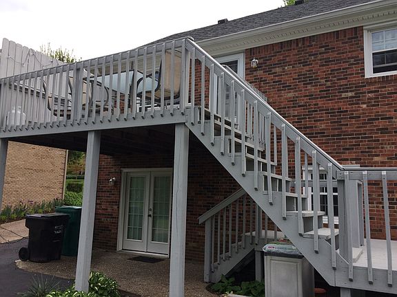 Wonderful 4 BDR, 3 bath ranch with walkout to wooded back yard, covered country front porch, deck with view of woods. Maintenence free exterior. New windows, roof, gutters, siding, french doors lower level. Newer A/C. New carpet in living, dining room and basement. Hickory hardwood floors in halls and kitchen. Very quiet, yet family friendly near end of cul-de-sac.