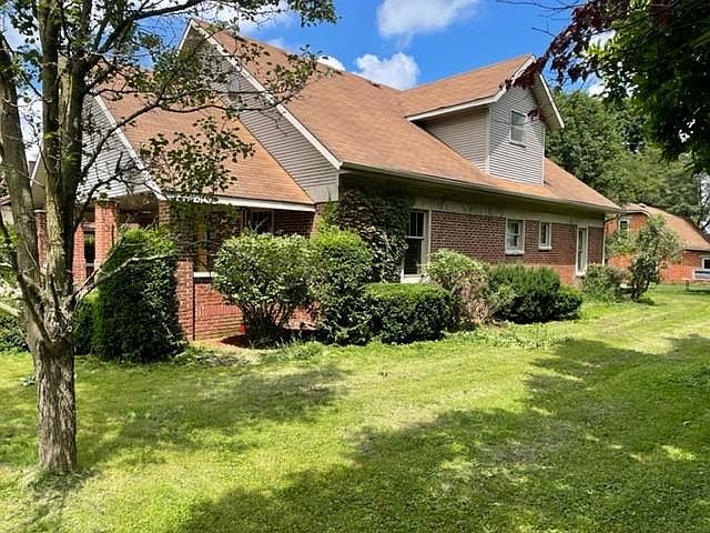Charming traditional brick home with detached 2 car garage with workshop and large wood burning stove. Large yard with mature trees and nice shrubs. Has its own gas well total gas furnace and fireplace. Heat for FREE! 3 full bathrooms, upstairs bath has garden tub and bidet. Beautiful hardwood floors, crown molding and trim. Half basement, gas fireplace needs log. Large covered front porch and rear patio area.
