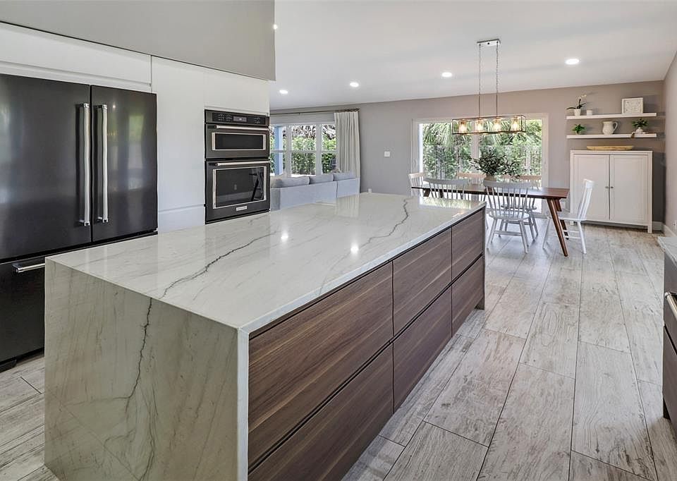 Meticulously renovated home, just appraised! Looks and feels like new construction with a level of sophistication and quality rarely seen at this price point. Including BRAND NEW IMPACT WINDOWS, METAL ROOF and spray foam insulation(2025). A bright and airy ambiance is created by the tall ceilings and spacious layout. A modern kitchen with high-end KitchenAid appliances, waterfall quartz island, and soft-close cabinetry w/integrated lighting. Lutron Caseta smart switches and screwless plates control LED lighting throughout the home. The Primary bedroom with 5 piece bath is on the first floor along with the laundry room, half bath and a bonus room (den/playroom/office). Outside, you have a huge backyard on an oversized lot with a sparkling pool and water feature, perfect for entertaining.