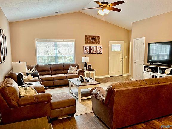 NEW LISTING/HOKES BLUFF built in 2016 this 3 bed 2 bath home has it all. The large covered front porch with iron railings welcome you to come into the large family room with vaulted ceilings, U shaped kitchen with plenty of cabinets and stainless appliances. There is a spacious dining room that leads to the back deck perfect for watching the kids, pets, or grilling. Recent updates include new lam flooring throughout, and paint in the bedroomsAll other rooms have 9' ceilings. The hall bath has recently been updated and the master bath is completely updated with huge, tile shower, double, tall height vanity, flooring, and lighting. The large master has his and her walk in closets and on suite.