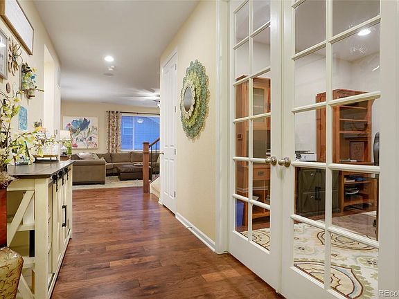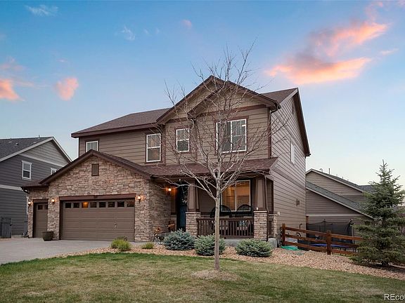 Nestled in beautiful Cobblestone Ranch this stunning two story corner lot home boasts an oversized 3 car epoxy coated garage an expansive backyard. Step into this stunning home blanketed with hard wood floors on the main floor. A front facing office, expansive and open family room, custom chef's kitchen, half bath and bright dining room await on the first floor. Built-in speakers and gas log fireplace complete the family room. Adjacent the custom kitchen with massive center island await with stainless steel appliances, double oven, gas range, ice maker and storage beneath the granite island create a beautiful custom kitchen. Escalate to the second story where you'll find three spacious bedrooms with large windows with easy access to a full bath. A large loft connects the second floor and allows a beautiful meeting space as well as allows access to the second story laundry room. The master bedroom is sure to please with private access to the five piece master bath. Walk-in shower with pebble floor, large soaking tub, private wash closet, dual sinks with storage beneath and expansive walk-in closet await. In the basement another bedroom, full bath and lots of storage space await adjacent to the huge game room and media room with dry bar. This home has been loved and taken care of, don't wait to tour for yourself! Hot tub in the backyard under the deck is included for any interested buyer.