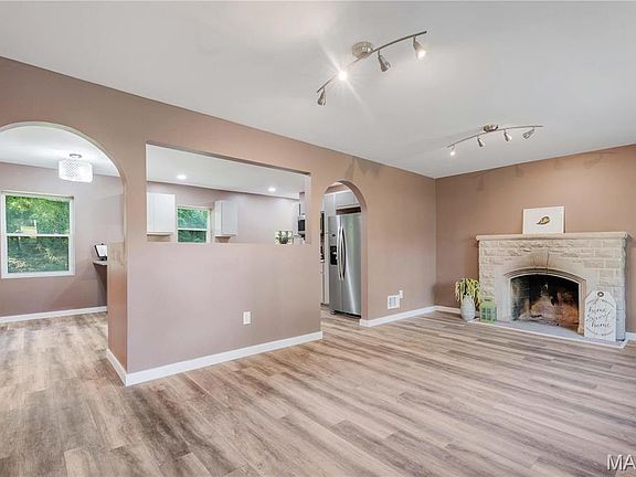 Great Investment Opportunity or Perfect Family Home! Charming, newly renovated, light-filled brick ranch is waiting for you! New features include fresh paint, flooring, lighting, HVAC, water heater, roof, electric panel, plumbing, garage door, baseboards, outlets & receptacles, baths, kitchen cabinets, some windows & doors are new! The LR features a wood-burning fireplace & opens to the renovated kitchen and breakfast rm. Kitchen boasts new cabinetry, countertops, & SS appliances (refrigerator stays). The family rm could function as a 3rd bedroom & has access to a large deck. Huge tree-filled, fenced backyard offers great spaces for gardening. The full lower level is has 9' ceilings & over 1,000 sq ft of bright and airy space. With a walk-out and large window, the lower level offers versatile space for your family's needs (could add bedrooms here). Close to UMSL, Highway 70, the airport, and Boeing, this home offers convenience and accessibility. All this and priced under $200K!