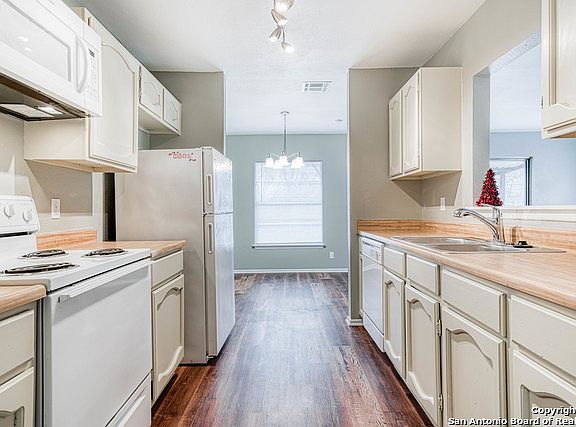 Beautifully updated 3 bedroom, 2 bath home near the Medical center and USAA. Modern interior with neutral paint colors will be easy to decorate! Walking trails and park nearby. Large master bedroom with upgraded bath and lighting/fans. White appliances, Eat-in kitchen, new flooring (manufactured wood) and wood-like tile throughout. Updated lighting and fixtures, large private yard fully fenced with shed. 2 car private garage too!