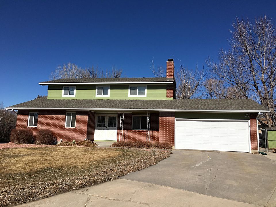 Beautiful, large, well-kept home sits in a quiet cul-de-sac on a quarter of an acre lot. Only minutes from Fort Carson, I-25, schools, and Powers. Covered front porch and back patio. Large living room with hardwood floor and new curtains, wood-burning fireplace, and built-in shelves. 2 formal dinning areas! Stainless-steel appliances in the galley kitchen, large pantry, and partial view of Pikes Peak from kitchen window. One bedroom/office and a half bathroom on main level. Four bedrooms are upstairs, including master bedroom with en suite bathroom, all with hardwood floor. In the basement is another large family/game room with pool table, a bedroom, a new 3/4 bathroom, and several large storage spaces. Huge backyard has rose garden, 2 spacious sheds, and a 2-car carport. Specified in lease agreement.