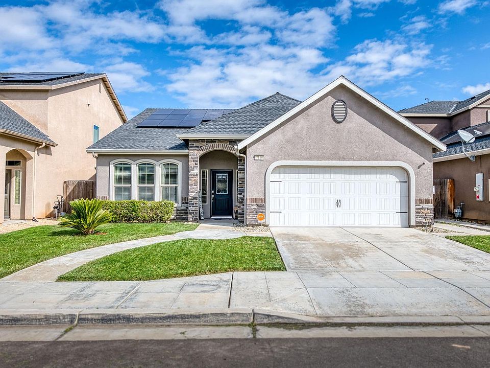 Beautiful energy efficient Lennar home located in a highly desirable NW neighborhood. On entering the home, you are greeted with recently updated luxury vinyl plank flooring which flows throughout the living area, hallways and bathrooms. Expansive kitchen with huge center island overlooking the living room, features granite counter tops, upgraded tile backsplash, stainless steel appliances with gas cook top and an abundance of counter space. Two bathrooms and 3 generous size bedrooms along with a bonus flex room. The primary bedroom includes a walk-in closet with built in shelving and drawers. Easy care backyard includes a custom built gas BBQ with covered patio, raised stone garden wall and synthetic grass. All this and SOLAR. Conveniently located near shopping, restaurants, schools and freeway access.