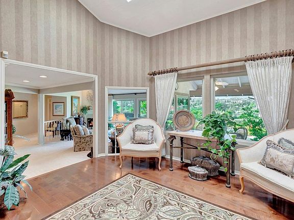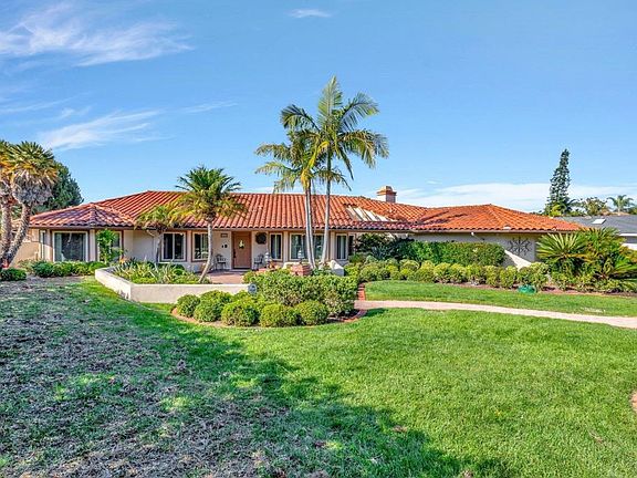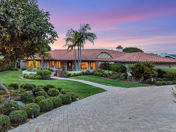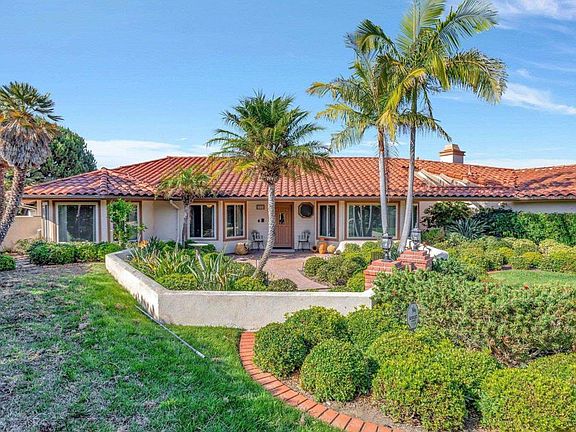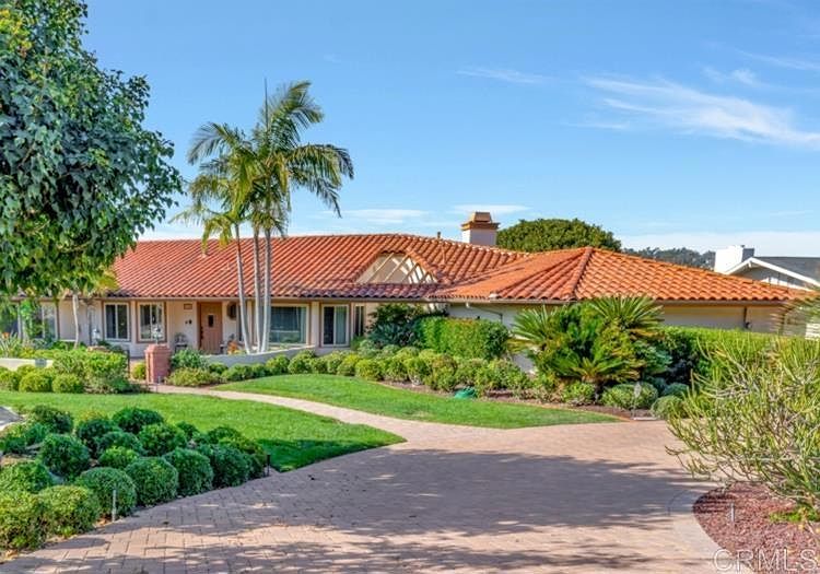 This gracious one-level residence is situated privately on a quiet street in Old La Costa. Enjoy sweeping views of the La Costa Golf Course’s 13th hole from almost every room. A traditional floor plan presenting a formal living room with a vaulted ceiling, separate formal dining room with coffered ceiling plus a spacious casual family living center with wet bar. Upon entering, you’re greeted by a spectacular foyer/sitting area with rich cherry hardwood floors overlooking the backyard, fountain & golf course. A large peninsula kitchen with granite counters, stainless steel appliances, painted cabinets & breakfast nook will reward the serious cook. Warm gas fireplaces grace both the family room & the living room. The large primary suite has golf course views & access to the back yard patio through a wall of glass. It offers dual vanities, 2 walk-in closets, a separate marble shower & soaking tub. Bedroom 2 is large & can serve as another primary suite with it’s en-suite bathroom & walk-in closet. Bedroom 3 is set up as an office with a built-in wooden executive-style desk & a wall of library shelving. Bedroom 4 is located privately away from the others, making it a comfortable guest suite. The bathrooms have been updated with luxurious marble. There’s an inside laundry room with built-in storage cabinets & a sink. The 1/2-acre grounds are fully landscaped with mature tropical plants, multiple patios, an artistic fountain & a beautiful circular drive, side driveway & front walk . . . all done in beautiful paver bricks. The upgraded windows have dual-paned glass & long-lasting vinyl frames. The HVAC is dual zoned with 2 furnaces, 2 air conditioners plus the 2 hot water heaters are newer. Extra features include room for storage in the attached 20' x 27' over-sized garage with openers & a security system for your peace of mind. This old La Costa estate is close to shopping, personal services, award-winning schools & fine cuisine restaurants.
