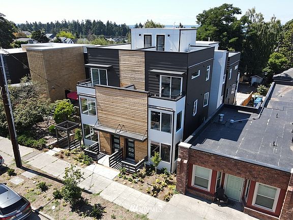 Staged beautiful new construction townhomes with Sound, Olympic Mtn. and territorial view. Generous master suite w/private balcony/deck, Mini-split, ample closets and spacious bath w/Carrara tile floors/shower. The kitchen features hardwoods, Cesar stone counter, Stainless gas range, micro and side by side frig. w/lower freezer drawer. Sunny roof top deck w/ views of Sound, Mountain and territorial. Tankless Gas H20, hardwds, Mini-splits, designated off street parking. Built Green. NO HOA dues.