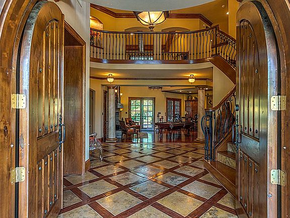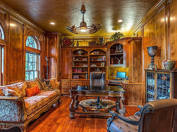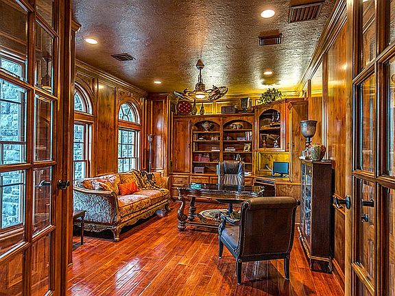 Truly a one of a kind location! Nearly 2 acres sited beautifully between the 6 & 7 fairway, offering never ending views without a neighbor in site. European Influence and Old World Charm showcase this masterpiece. Details to include: Impressive Master suite,travertine flooring, 5 masonry fireplaces, spectacular beamed ceilings, wine grotto for entertaining, interior stone accents, Professional grade kitchen w/knotty alder custom cabinetry, expansive covered veranda with summer kitchen.