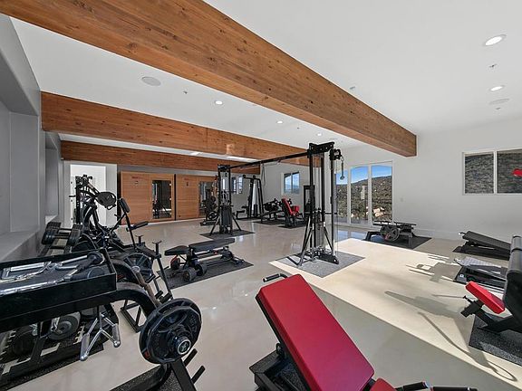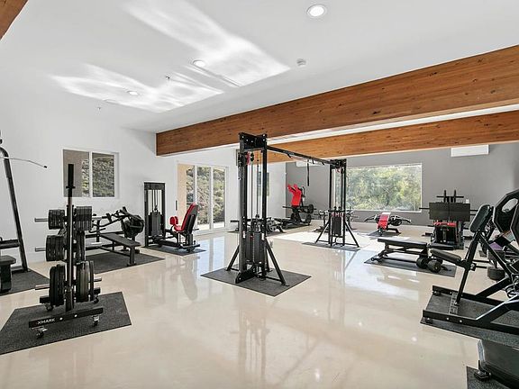 Creative Loft style living on two levels. A Bathroom on each level. Huge steam shower/regular shower on top floor next to bathroom. 2 closets. Kitchenette with ability to add more appliances. All new windows and La Cantina Bi Fold doors. Incredible views. 5 car garage with option to improve another 4 cars if needed. New HVAC, New Washer and Dryer. Multiple entry points of the property on 8 acres. Brand new gym equipment with 2 infrared Saunas for the perfect place to train your mind,body and soul. Truly a remarkable property.