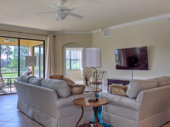 Enjoy Resort living in this tastefully decorated 3 Bedroom, 2 Bath 1st Floor Condo in River Strand at Heritage Harbor. Breathtaking views from your private screened lanai. Includes 27 holes of championship golf, Country Club with full service restaurant and bar, fabulous Pool with Tiki Bar, hard-tru lighted tennis courts, spa, state of the art fitness center and more. King Bed in Master Bedroom, Queen in 2nd Bedroom and Twin Beds in 3rd Bedroom. 2 Car Garage. A short drive to downtown Bradenton, Lakewood Ranch, world famous gulf beaches. Sorry No Pets Allowed. $4800 Per Month December thru April, $3000 May thru November. 3 month minimum during high season months of December thru April.