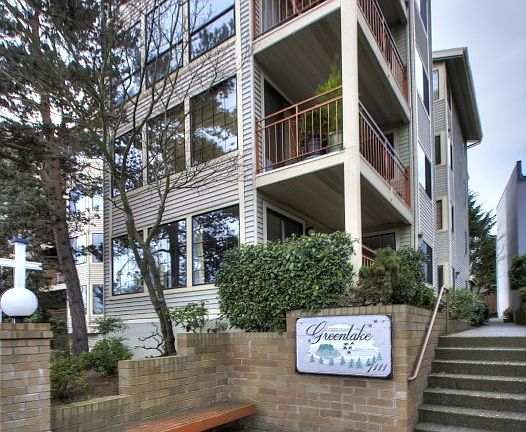 Quiet and spacious corner unit in a small and well-managed building, located just 2 blocks from Green Lake and close to everything that the Green Lake, Phinney, and Greenwood neighborhoods have to offer. Bright and open floor plan with huge kitchen, dining room, and living room with wood fireplace and covered patio. Two large bedrooms, in-unit laundry. Security building with garage parking. Updates include new floors, paint, appliances and windows. Ready to move in and enjoy life at Green Lake!