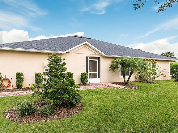 Maintenance free living at its finest in prestigious 55+ Heritage Isle! Better thank new. Freshly painted, new carpets, new refrigerator and more! Enter through a beautiful leaded glass door. This three bedroom, two bath half-duplex features open floor plan, stainless steel appliances, two car garage, washer & dryer included & security system. Relax & enjoy the park like setting from the screened, extended lanai. HOA includes all exterior maintenance and roof replacement. 24-hour staffed gated entrance!See it today!