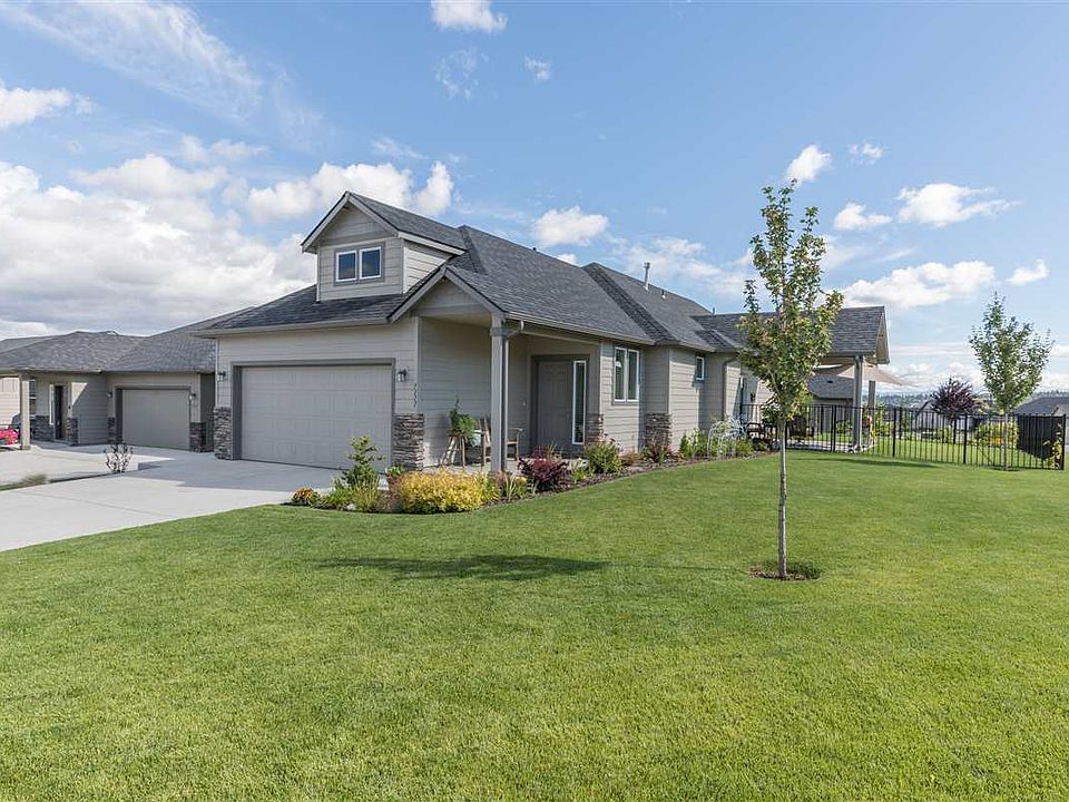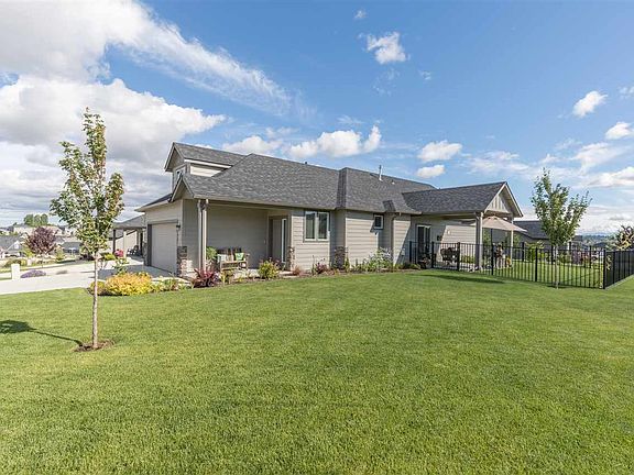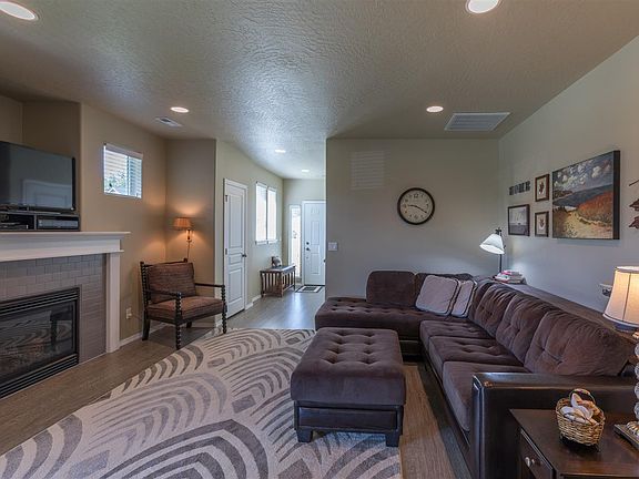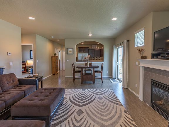 Charming, move in ready rancher in prestigious Eagle Ridge! The spacious living room, with its beautiful flooring and gas fireplace, adjoins the dining room. The kitchen features ample counter & cupboard space, including a pantry, with stainless appliances. An expansive master suite features dual sinks, walk in shower, & spacious walk in closet. The covered patio overlooks the fully landscaped, partially fenced yard. Enjoy the community walking trails and parks. A/C, oversized garage, all appliances stay!