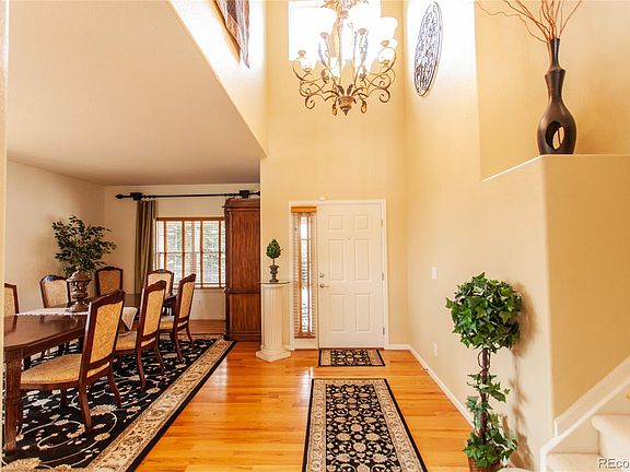 Welcome to this beautiful, immaculate, spacious home in desirable Castle Pines! Walk in from the covered front porch to light and bright 2-story entry. Dining room off the entry allows for large gatherings with family and friends. Lovely hardwood flooring is throughout the main floor. The updated kitchen includes cherry cabinets, granite counters, stainless steel appliances, and is open to the great room. Walk out to a private back yard with stamped concrete patio and lush landscaping, all backing to open space with miles of trails! Also on the main floor is an office, half bathroom, and laundry. Upstairs is a roomy loft with lots of natural light. On one side is the spacious master bedroom and adjoining 5-piece master bathroom and large walk-in closet. The master bathroom includes beautiful tile, cherry cabinetry and granite counters. On the other side of the upstairs are 3 good-sized bedrooms and hallway bathroom. Unfinished basement allows room to grow. Come see this amazing home!