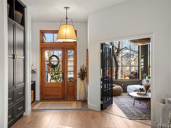 The ONE! Built into the hills of Westwoods, this home has been lovingly renovated with custom millwork, designer wallpaper, and high-end finishes. With 10' ceilings and windows in every direction, take in the natural light, the views of North Table mountain, and the panoramic sunsets over the foothills from your tree-level living space. The gourmet kitchen is thoughtfully designed (as seen in Magnolia Journal, Luxe Interiors, and 5280 Home), w/ a full suite of WiFi-enabled smart appliances, including a 48” dual-fuel range with built-in griddle, convection baking; a dual-zone built-in wine fridge; built-in 42”W refrigerator; and dishwasher. All cabinetry is soft-close with unlacquered brass hardware and pull-out shelving in the built-in pantry. Wire-sawn white oak clads the walls and 8’ long waterfall island. The primary suite features antique wooden doors leading into your ensuite with vaulted ceiling, custom tile, a Carrara marble and teak vanity, and a matte-finish freestanding tub. Tackle to-dos from your home office or homework station with built-in desk and book shelves. Two additional bedrooms + secondary bath (remodeled 2023) are on the main level, as well as a generous laundry room/mudroom, with soft-close cabinetry, locker-style storage, and a custom white oak bench. Downstairs is a haven, with designated spaces for play, lounge, work-outs in your closed-door home gym, plus a guest bedroom and 3/4 bathroom (remodeled 2021), and plenty of storage! The basement has a built-in electric fireplace and two large garden-level windows that look out into your newly landscaped yard. Steps from miles of biking and walking trails, both paved and natural; the highly rated Westwoods Elementary; and the silo hole of Westwoods Golf Course. A five minute walk to paddle board on Tucker Lake, and in the Fall, hear the nostalgic sounds of Friday night lights from one of two outdoor hangouts. Be prepared, you WILL fall in love with this home and all of its stunning details.