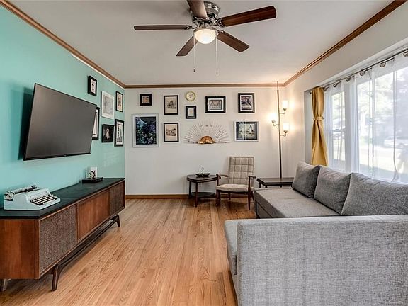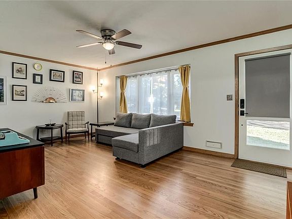 Move-in ready close to everything! Nice large fenced-in backyard and rare 2 car garage. Well-maintained and full of updates. Updated electrical wiring, added whole house surge protector, added electrical to basement, updated main floor bathroom with new sink, toilet and lighting, radon mitigation system, some new plumbing and sewer line cleaned. Refinished hardwood floors throughout, level yard recently graded around the house, fresh paint inside and out, new lighting and fans. Stainless steel appliances with double oven and new vent hood. New stainless steel single basin kitchen sink and faucet. Picture rail system in living room. New front door, new windows treatments, awnings, new Mohawk waterproof flooring in kitchen and new laminate countertops. Moveable island stays! Video doorbell. Nice basement with laundry area, non-conforming room/office, rec room and third full bathroom. Well-manicured landscaping and fully fenced yard with patio. Excellent location in award-winning school district!