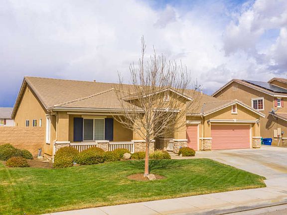 West Lancaster Single story home of 3095 square feet!Welcome Home to this single story home with 3 car garage.Front porch sets the mood as you enter through double door's.Oversized tile flooring leads the way to bonus room that was an optional 4th bedroom when built.Large formal living & dinning room are open for entertaining or family use.A nuetral colored carpet warms up all main spaces & oversized wood blinds on all windows.Family room is open to the kitchen & has custom fan with fireplace for a cozy feeling. Kitchen has a center island with seating & counter space.Kitchen has granite contertops & cabinet space galore! Butler's pantry has a bar & cabinets while leading to amazing walk in pantry.Dinning in the kitchen has sliding glass doors to back yard.Concrete patio just waiting for a patio cover.Custom back yard is surrounded by block walls,garden area, a barbacue pit, concrete, fruit tree's.Back inside a hallway leads to bedrooms with built in cabinet great for linen.