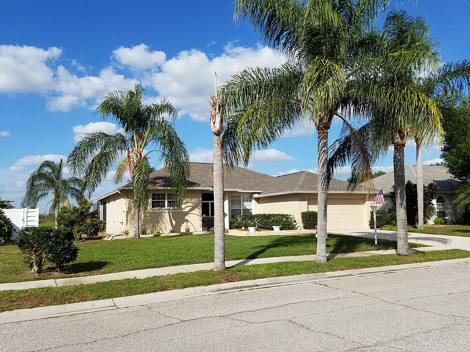 This well cared for mint condition Lakefront/Pool home built by Bruce Williams offers expansive waterfront views of the largest natural lake in Regency, teaming with wild life. This home has NEW top of the line Whirlpool appliances, Relax in the master suite and enjoy the soaker tub and separate shower overlooking the Lanai, Pool & Lake. 30yr 3 dimensional shingle roof installed in 2015, resurfaced pool, Ceramic tile in all the wet ares, carpet in the master bedroom and wood flooring in the dining, family, living rooms and newly painted interior and exterior Relax around the pool on the huge screen enclosed pool deck. You have a terrific view of the lake from every room. Regency Oaks is located only 20 minutes from St. Petersburg, Sarasota, Bradenton or Tampa. This is a Split floor plan with 2 car attached garage built in 1995, with 15 x 30 with a screen enclosed inground pool over looking a spring fed lake. Sliding doors leading to the Lanai pocket into the wall and make this home become and extension of the magnificent lake and pool area...