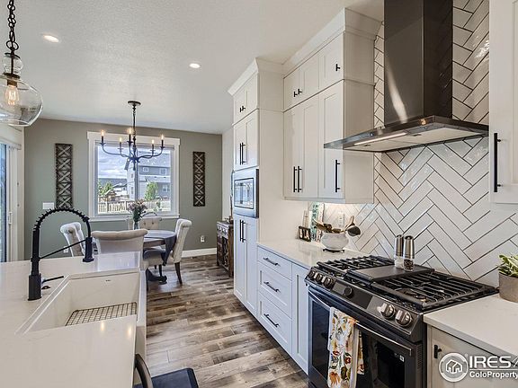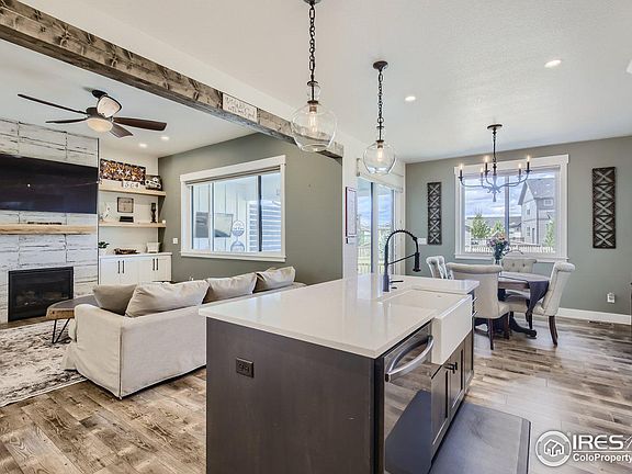 Welcome to the epitome of farmhouse elegance! Nestled in the heart of Timnath Ranch, this semi-custom home built by Apex is a showcase of modern comfort with classic charm. Boasting 5 bedrooms and 3 baths, this spacious layout offers room for everyone to live, work, and play. Enjoy the best of indoor-outdoor living with a layout designed to maximize space and natural light, creating a seamless flow throughout the home. Prepare to be wowed by the exquisite upgrades throughout. From the upgraded cabinets to the stunning flooring, every detail has been meticulously chosen to elevate the home's style and functionality. The butler pantry adds a touch of elegance, perfect for entertaining guests and storing your favorite culinary essentials. Pamper your furry friends in the convenience of the large laundry room featuring a dedicated dog bath - a thoughtful touch for pet lovers. Situated on a prime lot, the backyard of this home backs to a tranquil greenbelt, providing a private and serene setting to relax and enjoy the outdoors. Cozy up on chilly evenings by the outdoor gas fireplace, creating a warm and inviting atmosphere for gatherings with friends and loved ones. Outside, you'll find a charming exterior that complements the farmhouse aesthetic, while the Timnath Ranch community offers a wealth of amenities and picturesque surroundings to enjoy.