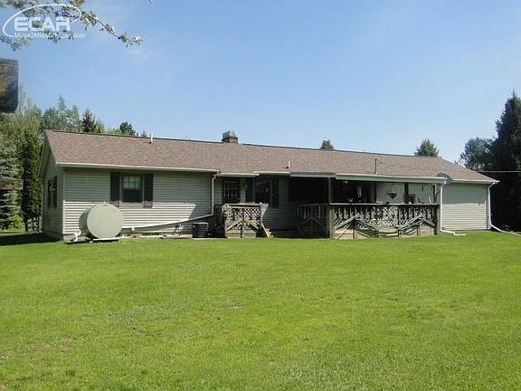 Peace and tranquility abound! This well built and meticulously maintained ranch on almost 8 private acres offers numerous amenities. Features included large 28x34 attached garage, finished basement with gas log fireplace and bar, spacious living room with gas log fireplace, solid core doors throughout the interior, ample closet space, large country kitchen with big pantry, crown molding, covered deck, french doors off dining room, Anderson windows, and an absolutely beautiful 7.84 acre parcel of property! Home is very efficient and inexpensive to heat. Nature and wild life are your friends.