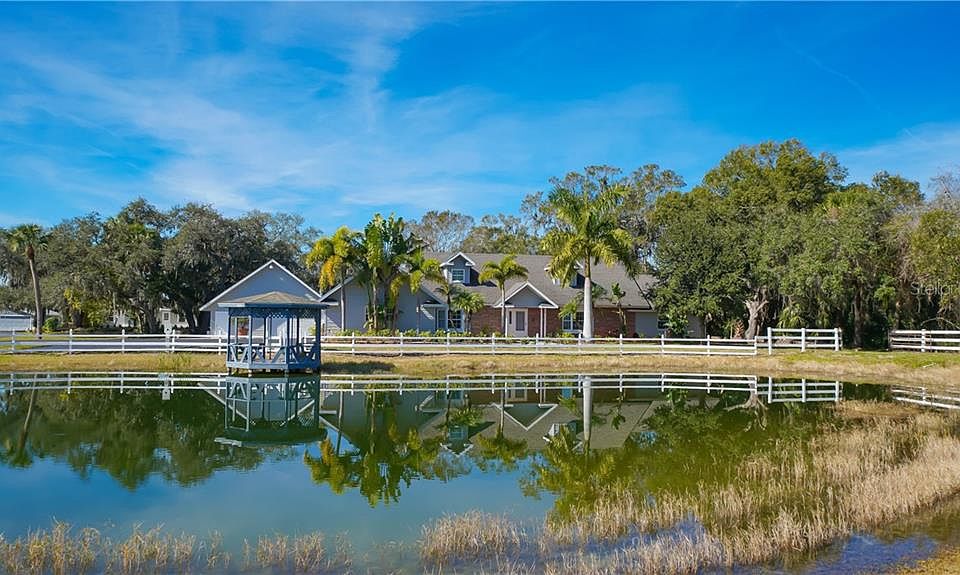 Country living close in. This is it a very unique property it is 3.77 acres, Close to Downtown Sarasota, IMG and beaches. The perfect home for multi-generational families or car collectors. Main house is 3 BR/3BA with 3 car garage, built in 1984. Nice plank flooring in living room, kitchen, family room, dining room, Den and Master bedroom. Boasting Corian kitchen with oak wood cabinets, cooking island, Stainless appliances, woodburning fireplace in Living room, plantation shutters, formal dining room with chair rail and bay window, den offers French doors, large master bath with dual sinks jetted tub and shower with glass bock. 2 zoned A/C. There is also a peaceful tiled lanai on the back. House and guest house are separated by a huge pool that's perfect for entertaining. The Guest house built in 1910 includes 3BR/2BA fireplace, living room, family room, sun porch, storage room & more. There are 2 separate garages for cars and or horses. 1 garage is 30x26 the other is 32x26 both have electric. There are 2 open stalls or feeding stations on the property. When you enter you'll be greeted by the brick entry way then the Lake with the Trex dock and gazebo. This is the perfect place to call home with endless possibilities, it truly is a must see!