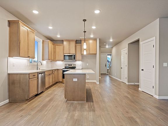 QUICK MOVE-IN HOME: Price includes upgrades. Limited time, Receive up to $15,000 towards Closing Costs or Rate Buy Down when you use our Trusted Lender. This 4 Bedroom home has two tandem bays for 5-Car garage parking! Amenities include 9ft ceilings on the main, open stairwell, Stained Cabinets, Quartz Slab Countertops in Kitchen and Bathroom/Laundry, Stainless Appliances, Full Height Retro Picket Style Backsplash, Under Cabinet and Pendant Lighting, Linear Style fireplace in the Great Room, Laundry Cabinets with Sink, Laminate Plank Flooring throughout open living areas, Tile Floor in Master Bath. This home is complete with Exterior Stone Accents, Garage Door Openers, and Front and Backyard Landscaping.Move-In Ready Homes in Thomas Manor are SELF TOUR enabled: Pick a time and we'll send you a code to unlock the door!