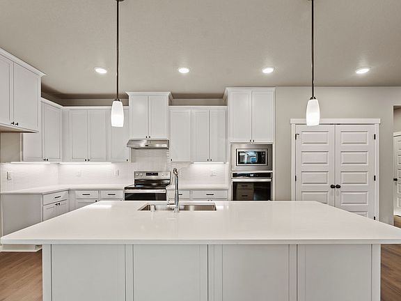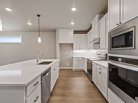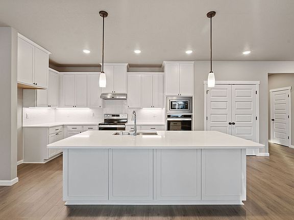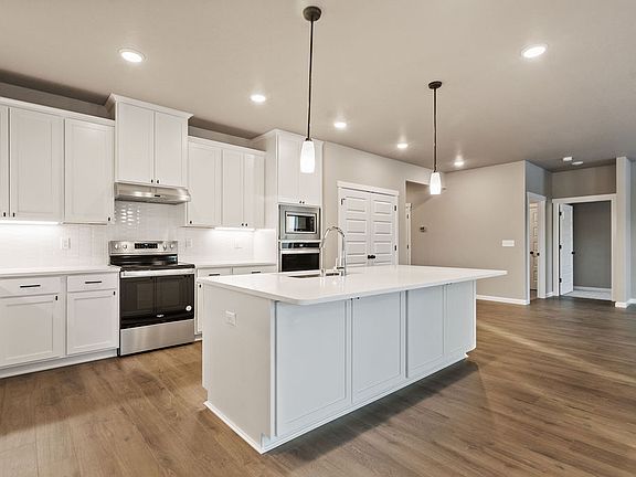 QUICK MOVE-IN HOME: Price includes upgrades. Receive up to $15,000 towards Closing Costs or Rate Buy Down when you use our Trusted Lender. This spacious single-level home has 4 bedrooms, a large island kitchen, and a huge 12ft x 24ft Covered Patio. Amenities include 9ft Ceilings, Painted Cabinets, Quartz Countertops in Kitchen and Bathrooms/Laundry, Full Height Retro Picket Style Backsplash, Stainless Appliances w/ built-in Wall Oven, Pendant and Under Cabinet Lighting, Linear Style Fireplace in Greatroom, Laundry Cabinets with Sink, and Laminate Plank Flooring throughout Open Living Areas, Tile Floor in Master Bath. This home is complete with Exterior Stone Accents, Garage Door Openers, and Front and Backyard Landscaping.Move-In Ready Homes in Thomas Manor are SELF TOUR enabled: Pick a time and we'll send you a code to unlock the door!