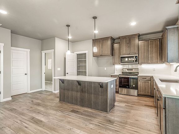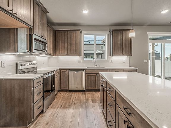 QUICK MOVE-IN HOME: $499,900 includes all Upgrades, Full Landscaping and up to $15,000 towards RATE BUYDOWN with our Trusted Lender. This home has four bedrooms plus a den on a Corner Lot! Amenities include 9ft ceilings, Covered Rear Patio, Stained Cabinets, Quartz Countertops in Kitchen and Bathrooms, Stainless Appliances, Full Height 4 by 16-inch Subway Style Backsplash, Under Cabinet and Pendant Lighting, Linear Style fireplace in the Great Room, Laundry Cabinets w/ Sink, Laminate Plank Flooring throughout open living areas, Tile Floors in Master Bath. This home is also complete with Exterior Stone Accents, Garage Door Opener(s), and Front and Backyard Landscaping. SELF TOUR Homes in Thomas Manor: Pick a time and receive an Entry Code!