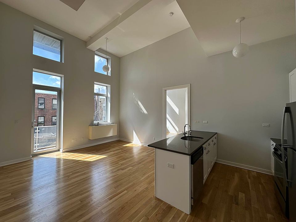 **Enjoy one of the LARGEST 2BR/2BTH layouts that exists in the building and features the ADDED BONUS OF AN East-facing BALCONY! The LIVING SPACE is generous & bright & features an extra row of windows that really open up the space! Enjoy your morning coffee out on your balcony and enjoy the ease and flow of OPEN KITCHEN with a large Quartz island - the perfect set-up for those who enjoy hosting and entertaining. The CHEF'S KITCHEN features Italian Quartz countertops, GE Profile Stainless steel appliances (including dishwasher), and abundant cabinet and storage space. (Gas stove & the gas is included in your rent! :) )