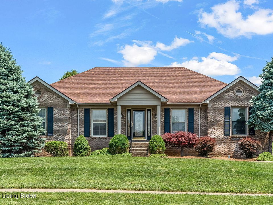 Desirable ranch style home in Parkridge. Subdivision is located across from Iroquois Park, enjoy entertainment at amphitheater, dinner at Colonial Gardens. Sidewalk throughout and around lake with fountain. One owner, 3-4 bedrooms, 3.5 baths, and finished basement. Stand in front yard and look out over Louisville area. Large kitchen, desk, bar stool counters, dining area, separate laundry/pantry room. Great room with fireplace and dining/office or sitting room. Spacious primary bedroom, bath has water closet, 4' shower stall, walk-in closet, tub. Finished basement has open room, kitchen, full bath, and ''other'' room used as bedroom. Deck off double doors from great room, attached garage. All appliances remain, both kitchens and washer/dryer, central vac. Call and see TODAY!