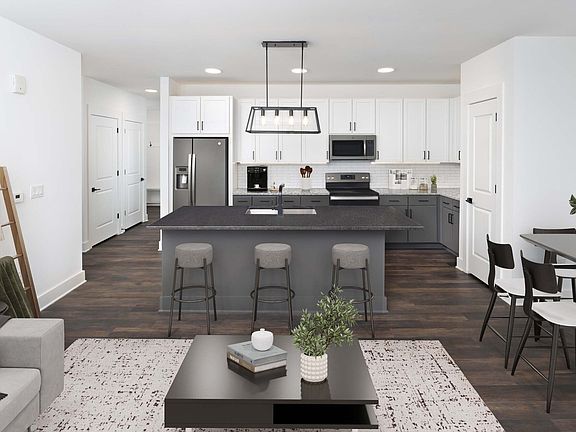 Private patio or balconyBuilt-in deskFull-size washer and dryerBerber-style carpetLarge undermount kitchen sinksWhite subway tile backsplashTwo-tone shaker cabinetry