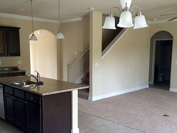 The Hayden opens into a space that could function as a bedroom or study, down the hall is the open kitchen, living, and dining area. The kitchen has a large pantry, and countertop bar space overlooking the living room. Off of the living room, is a bedroom which is across from a full bath. Upstairs is the master suite; in the bath there is a dual vanity, separate tub, separate shower, water closet, and walk in closet. The third, fourth, and fifth bedrooms are all near the third full bathroom and the upstairs living room.