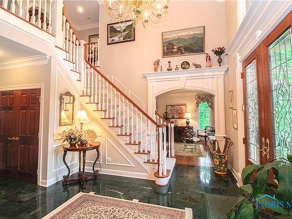 Hidden gem in Monclova Twp on 2+ acres sits back far enough to feel like a private retreat! Upscale living in this estate-style home includes unparalleled architecture throughout. Dramatic two-story foyer w/ access to formal living & dining rooms. HUGE family room w/ beamed cathedral ceilings, corner office nook and gas fireplace w/stone hearth. Gourmet kitchen w/ adjacent sunroom. Walk-out lower level adds over 3,000 sq.ft. of living including a beautiful indoor pool, wet bar, sunroom, exercise room, full bath and large family room. Wooded ravine setting w/ multi-level decks and large patio.