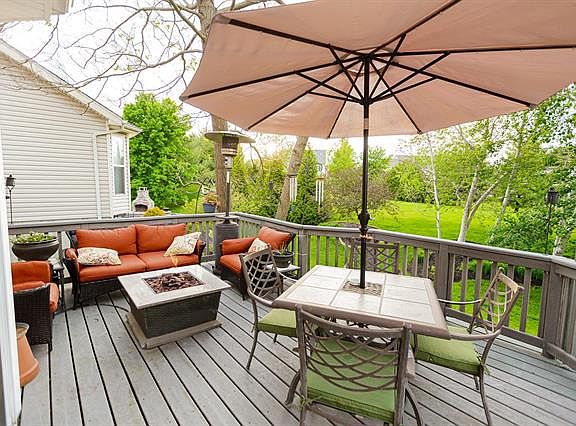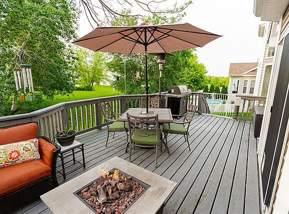 Beautiful 1.5 story home w/gorgeous, private back yard & awesome composite deck, w/convenient access to subdivision pool/clubhouse! Marble entry leads to 2 story great room w/beautiful wall of bay windows, providing a dramatic look as you enter the home! Built in display shelving surrounds fplc. Open floor plan w/spacious formal dining w/carpet inset in marble surround. Vaulted kitchen offers granite counters w/brkfst bar, tons of 42" cabs, inverted vault over sink, plan desk, WI pantry & butler pantry + wine station! Hearth Room w/2nd fplc offers great place for family gatherings! Walk out breakfast area to amazing composite deck overlooking gorgeous, private back yard! Huge main floor master w/lg bay wndw & WIC & spacious bath w/double sinks, corner tub & sep shower! Upper level offers large loft/family rm area & 3 nice size bdrms & full bath! Lower level offers rough in & 2 lg wndws for future finish & built in shelving! 3 car gar,Zoned HVAC,updated roof,mud rm & mn flr laundry,more