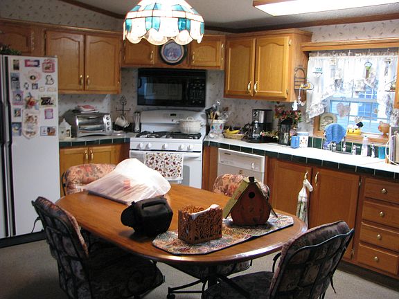 THIS HOME IS SUPER CLEAN AND MOVE IN READY. IT IS A NON-SMOKING HOME. THIS HOME HAS A LARGE KITCHEN WITH LOTS OF STORAGE THAT IS OPEN TO THE LARGE LIVING ROOM WITH BEAUTIFUL WRAP AROUND CABINETS FOR STORAGE AND DISPLAY. THE LARGE MASTER BEDROOM HAS A FULL MASTER BATH COMPLETE WITH A GARDEN TUB AND SEPARATE WALK IN SHOWER. TWO SINKS- EACH WITH ITS OWN MEDICINE CABINET. THERE IS ALSO A LARGE WALK-IN CLOSET. THIS HOME HAS TWO OTHER BEDROOMS WITH LOTS OF CLOSET SPACE AND A SEPARATE BATH WITH A SECOND GARDEN TUB AND SHOWER. THIS HOME INCLUDES A TWO CAR FINISHED GARAGE WITH WORKSHOP AREA AND ATTIC STORAGE. THERE IS A 12X16 DECK WITH GAZEBO. THIS HOME HAS BEEN WELL MAINTAINED. REFRIGERATOR, BRAND NEW GAS STOVE, MICROWAVE AND DISPOSAL INCLUDED. WASHER AND DRYER NEGOTIABLE. ALL WINDOW TREATMENTS ALSO INCLUDED. LOCATED IN THE CARRINGTON POINTE MOBILE HOME PARK ON COOK RD FORT WAYNE, IN