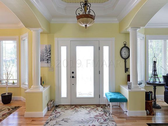 Away from the city hustle & bustle! Beautiful home on 3/4 acre river lot protected by Sheyenne Diversion. Located in Woodland Acres just N of Horace & only 10 minutes to West Acres! Hanson Brothers built 4 year old home w/so many amenities, to name a few:10 ft ceilings! 7'' crown molding!Hickory wd floors! Grand foyer w/columns & tray ceiling! GOURMET kitchen w/so much attention to detail! Gas stove w/convection oven & electric wall oven! 2 sinks! Soft close custom cabinets w/pullouts & garbage recycle drawers! Huge bright pantry! Formal dining rm!Main floor family rm & Main floor laundry! Master suite w/huge walk-in closet & Monster shower!New prof finished LL w/family rm,game rm,theater rm, 3 bdrms & 2 baths.Furnished treehouse w/porch & lofts! 2 Gazebos! Large deck! Gar:2 att,2.5 detach
