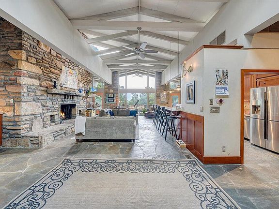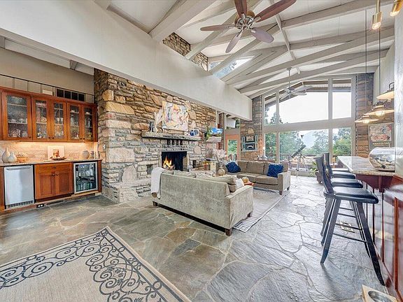 One of a kind-must see-serene estate property located on 8.48 ac. w/ mountain views & privacy. Contemporary Mid Cent. w/ vaulted great room featuring massive stone fireplace, 20' ceilings open to chef's kitchen w/ custom cherry cabinets & updated appl's, ie: 6 burner gas stove, 4 zone fridge/freezer. 4'' conc. floor under tenn. limestone & 5'' oak planks. Exquisite mstr. suite with must see mstr. bath & huge walk-in closet/dress. rm. Upper guest bath features grecian well bath. 40 solar panels make the home energy efficient. 12' walnut tree spiral staircase w/ westn. cedar leads to walkout bsmt. w/ fam.&rec. spaces. 2 addl bdrms, 3rd full bath & wine cellar. Outside enter. space w/ inground pool, hot tub, outdoor kit. w/ vulcan range. Teak deck, 2 stor. bldgs. Wthr.. proofed under dec
