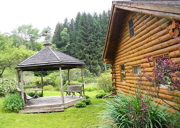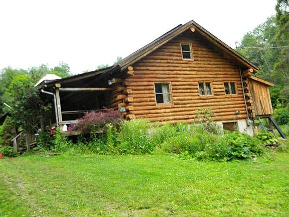 This quality built log house is located on a quiet dead end country road in the southern part of Allegany County just across the border from Pennsylvania.The house is on 6+ acres along with a gambrel barn and greenhouse plus there is a fenced in area for livestock with run-in shed. The log house includes a clear span log rafter system providing an open floor plan with living room warmed by a soap stone woodstove, dining area and large kitchen. There are 3 bedrooms and 2 full bathrooms all on the 1st floor and at each end of the house is a 2nd floor open loft area.
