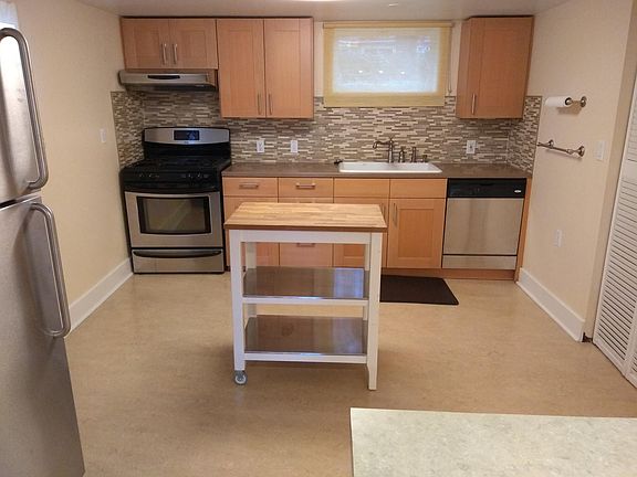 Private 1150SF, 1 bedroom, 1 bath apartment with 9 windows that let in natural light. This is the entire finished basement in a bungalow-style house. The apartment is clean and in excellent condition. The owners live in the main house upstairs. Separate entrance from main house. Stained/sealed concrete floors in entry and common areas; carpet in bedroom & bonus room. Large bathroom with tile floor, slate shower w/glass door, and lots of storage. Kitchen with marmoleum flooring, dining counter & stools, garbage disposal, Corian countertop, and stainless appliances: refrigerator, gas range, dishwasher. Large living room adjoining kitchen. Private laundry w/efficient front-loading washer and gas dryer. Large storage room with lots of shelving. Large shared backyard with table, BBQ, and fire pit. Just a few blocks from downtown St. Johns (groceries, retail, restaurants, coffee shops, theaters, pubs). 1.5 miles from University of Portland and Pier Park (86 acres). 7 miles easy access to downtown Portland. Across the river from Forest Park.1/2 mile to Cathedral Park. 2-4 minute walk to several bus lines. This is a no smoking/ no vaping/ no cannabis/ low scent household. No pets allowed. If interested, please answer these questions via text to Bill at 503-278-2514: 1. In your household, how many total occupants would there be? 2. How many of the above are adults? (age 18+) 3. On or about what date do you plan to move in to a new place? 4. First name & phone # of who I should contact. Amount due is $1,400 per month (includes all utilities except gas; gas bill of $30-50/mo. due in addition). $1400 security deposit (refundable) + $300 carpet cleaning fee (non-refundable) due at lease signing.