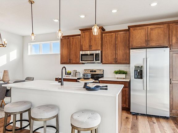 Welcome to 7114 Parquet Avenue NE in Otsego, MN, and fall in love with this 1-story Quick Move-In home for sale, which offers 2 bedrooms and 2 bathrooms throughout its 1,322 square feet. Head inside through the front door, where an expansive foyer awaits, holding a bedroom, a bathroom, and a laundry room / mud room with access to the garage. The dining room, kitchen, and family room all come together, providing you with a spacious and open hub with no dividing walls. So, while you're whipping up a delicious meal for dinner, you can still watch your favorite show from the family room across from you! Locate the owner's suite just off the family room. 5 windows line the walls of this spacious bedroom, while your en-suite bathroom features a dual-sink vanity and a walk-in closet.