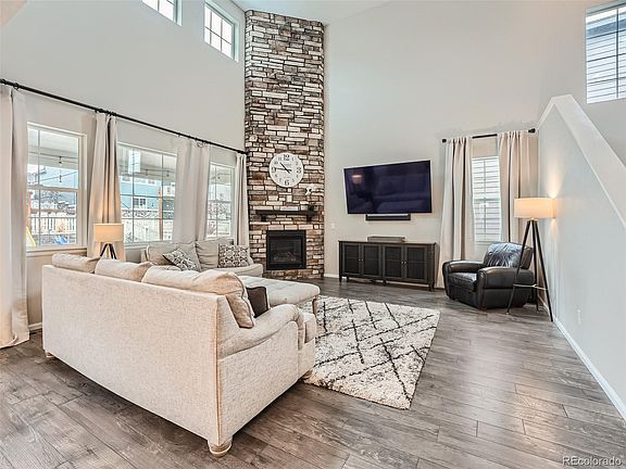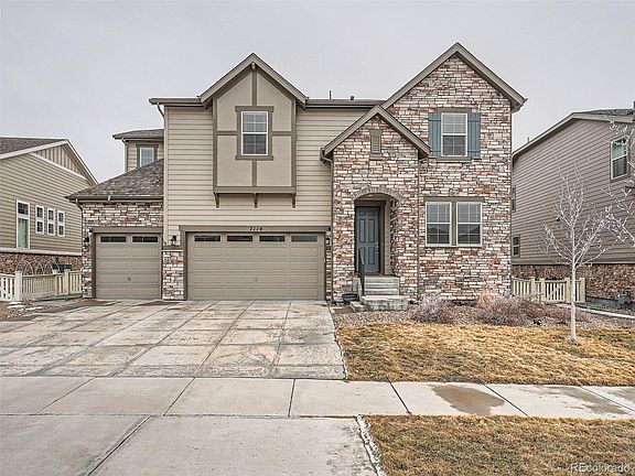 This is a fabulous executive retreat that will satisfy the most discerning of buyers. The main floor is open and bright with extended laminate wood flooring that flows into the spacious family room featuring an upgraded floor to ceiling stone fireplace, soaring ceilings and lots of sunlight. The gourmet kitchen has a large island, gas cooktop, range hood, double ovens, granite countertops and a great walk-in pantry. The main level office has French doors and is separate from the living area. There is also a great bonus room that is currently used as a playroom, simply add doors for a bedroom. The mudroom has a custom drop and go center for the family. Upstairs you can retreat to your large primary which features tray ceilings, a 5-piece luxury ensuite with a brand new tile shower with great design elements and a large walk-in closet. The upper level also includes three additional bedrooms, one with an ensuite bath and the other two have a Jack and Jill set up with private sinks all with mountain views. The laundry room has a multitude of storage and ample room to tackle everyone’s least favorite task. Downstairs is ready to be finished, but has high ceilings and large windows so it is already inviting. There is also an incredible amount of storage. The three-car garage has extra storage, finished flooring and drywall. The great backyard has recent updates including new perimeter landscaping, a covered patio and artificial turf for low maintenance, a custom-covered concrete patio featuring market lights, and a fire pit. The current homeowner also replaced all the carpet and repainted the house in the last few years. In your spare time enjoy two neighborhood recreation centers and everything that Southshore has to offer including special events and activities throughout the year.