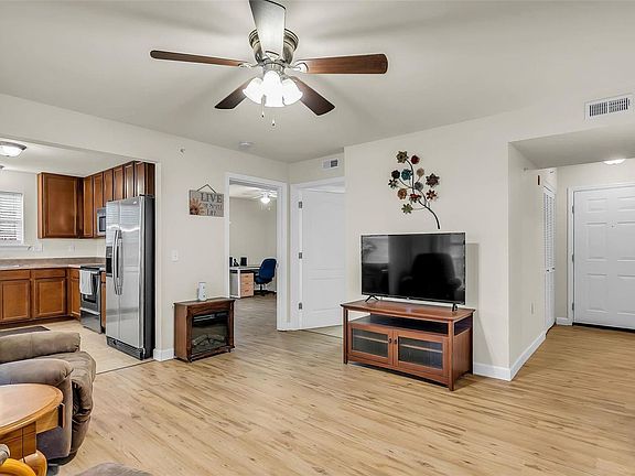 You cannot beat the location of this property! Close to shopping, restaurants and highways. Situated on the Ground floor, this two-bedroom, two FULL bathroom condo features and open floor plan perfect for entertaining. The dine-in kitchen displays upgraded 42" cabinets, Stainless Steel appliances and full-size pantry. PLUS the refrigerator Stays!! You can sit outside and relax on your private patio complete with extra storage. The home is complete with a private laundry room with LG washer and dryer to remain. In addition, one assigned parking space is also included. Location: Ground Level, Suburban