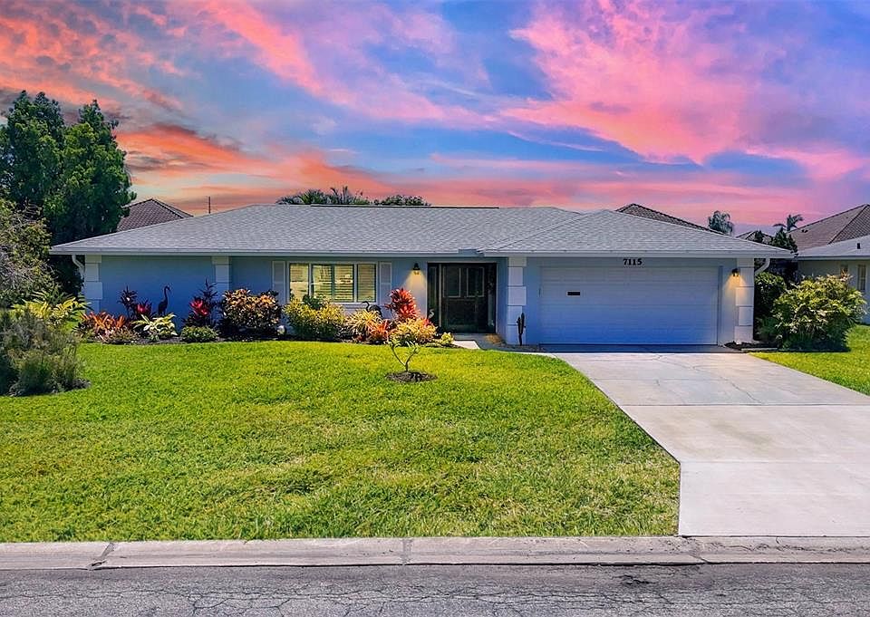 One or more photo(s) has been virtually staged. Come Visit... Fall in Love!! Enjoy coastal living at it’s finest in this stunning 3-bedroom, 2-bath, nearly 1,700 sq. ft., pool home nestled in the heart of West Bradenton’s highly desirable Village Green Community. Upon arrival, embrace the beautifully landscaped entrance exploding with incredible Florida colors. Immediately upon entering you will be captivated by all of the charm and beauty this wonderful home has to provide with it’s open and inviting split floor plan, luxury laminate flooring flowing seamlessly throughout the entire living room, dining room and primary bedroom. Every room of this delightful home reflects the highest attention to detail and creates a warm, elegant, yet relaxing atmosphere. Featuring an updated spacious culinary oasis for even the most discerning chef with ample, light coastal cabinetry and sleek, modern, brushed nickel hardware, stainless appliances and abundant quartz counters for preparing your favorite family meals. Perfect for entertaining with the combined kitchen bar and extremely spacious, comfortable family room overlooking the private, showstopping resort like pool and expansive paver-bricked lanai, surrounded by lush tropical landscaping with sweeping views through it’s wonderful, picturesque sliding glass impact doors. Conveniences around every corner, including the abundant storage, and spacious two car garage. The thoughtful layout includes a split bedroom plan, providing privacy and versatility. Two large guest bedrooms, freshly painted, brand-new carpet and an updated, spacious guest-bath near by. One guest bedroom has a huge walk-in closet plus a spectacular view of the pool and screen lanai through sliding glass impact doors. Retreat to your gorgeous generously sized primary suite with sweeping, serene views of the relaxing pool, and screened patio with enchanting lush landscaping. Enjoy a substantial walk-in closet, impressively remodeled en suite bath, featuring marble subway shower tile, abundant vanity cabinetry and counter space, a sleek sliding glass shower door, new flooring, and updated lighting - all in a neutral, modern palette. This home is situated just minutes away from medical facilities, restaurants, and renowned GT Bray sports and recreational complex, as well as being within easy reach of shopping and schools. The location is very central and convenient. Additionally, the Gulf beaches of Anna Maria Island, Robinson’s Preserve, Desoto National Park, and Palma Sola Botanical Garden are only a few short miles away, where endless enjoyment awaits. Enjoy peace of mind with the many updates this wonderful home has to provide, with new roof, new front gutters and exterior paint refresh in 2025, new A/C in 2022, upgraded irrigation system featuring a 60-ft deep pump and rainbird controls installed in 2024, new re-screened pool enclosure in 2024, new Pentair Ultratemp heat pump in 2022, Lenox heat pump in 2020 and water heater was replaced in 2018, new hurricane impact windows in 2020, 32 solar panels installed in December of 2020 with app-based monitoring to track power usage and solar output. A new Genie garage door opener and four motion- activated LED lights (2022). Lush, updated backyard landscape includes banana, mango, avocado, peach, and lime trees along with a passion fruit vine and milkweed plants that attract Monarch, Fritillary, and Zebra Longwing butterflies. Enjoy watching the beautiful video and call today!