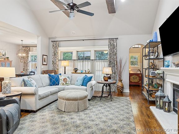 Luxury Custom-Build w/ Theater Room on private Cul-de-sac. Hardwoods, Cathedral Ceilings, Granite Counters & Screened-in Patio. Exceptional Master Suite with His & Hers Bath and Walk-in Closet (connects to Laundry)! Pond & Trail. JENKS Schools. 20+ upgrades make the list too extensive to showcase here! Agent is related to sellers.