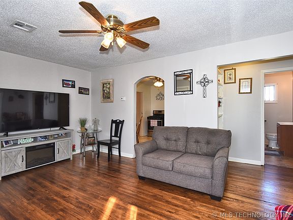 Cozy bungalow, located less than two miles from Gilcrease Expy and Hwy 244. Conveniently located near the airport. Garage converted into a third bedroom. Full bathroom with tub. Storage shed with spacious patio and wood deck. Fenced patio. Refrigerator, microwave and gas stove remain with the property. Rustic original hardwood flooring. Contact your Realtor to schedule a showing today!