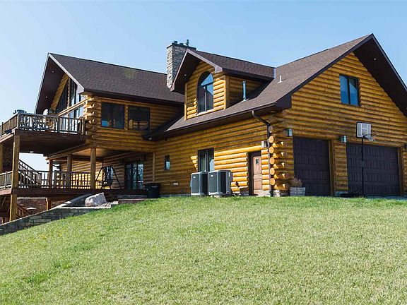 This is a once-in-a-lifetime opportunity to own a tremendous estate within an easy drive of Hastings, yet located in a quiet secluded location. Property includes 40 +/- acres of fenced pasture, 6,256 sq. ft. log cabin sided home, 2,568 sq. ft. walk-out basement, 77' x 70' heated Morton building with horse stalls, 2 ponds with zipline, dock and sand volleyball court!
